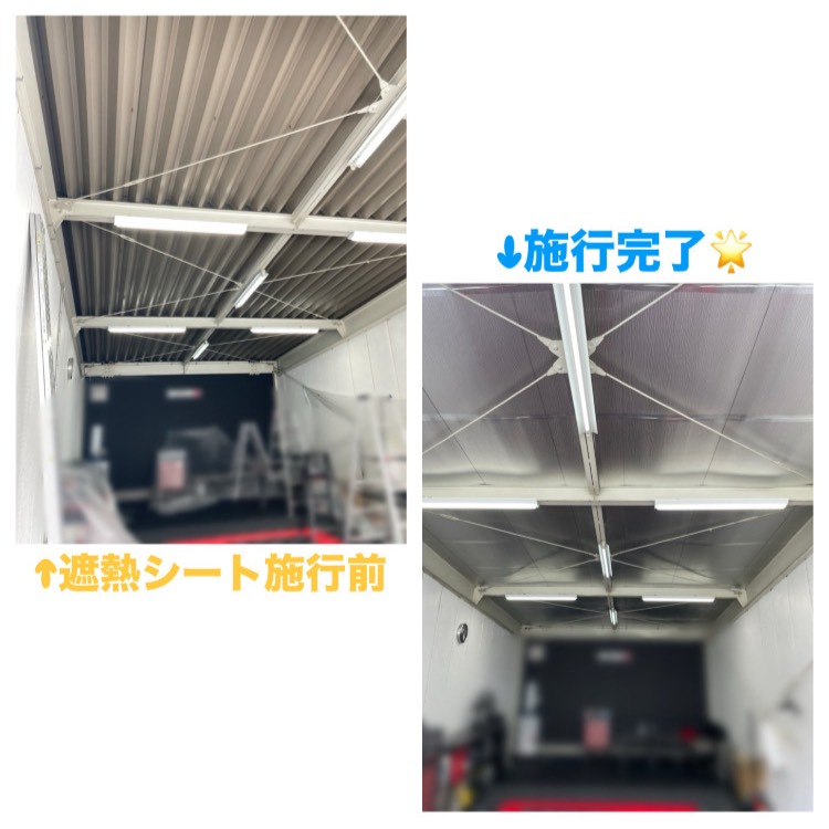 | 2022年8月 兵庫県尼崎市 【 製品名 】 プロックス遮熱シート PRX-PED 50㎡ 【 事業内容 】 とび・土工・コンクリート工事・解体工事の建設業 【 問題点 】 倉庫は賃貸物件であるため、原状復帰が可能な施工方法を選択する必要があった。屋根面に直接施工する方法や、固定が強固になる工法は採用しにくく、条件に合致しながら遮熱性能を確保する方法を慎重に検討する必要があった。 【 施工過程・変化 】 通常は建築物向けの遮熱シートを使用することが多いが、今回は対象エリアの美観を重視したいというお客様の要望があった。そのためシワが出にくく、見た目が整いやすいプロックス遮熱シートPRX-PEDを採用し、施工を進めた。 【 お客様の声 】 施工前と比べると、倉庫内があきらかに涼しくなりました。 スポットクーラーの効果も実感しやすくなり、作業環境がかなり改善されました 【 担当者 】 今回の施工は、仕上がりの美しさにもこだわりながら進めました。 お客様のご要望に沿った仕上がりとなり、とても綺麗に完成したと思います。見た目・効果ともにご満足いただけて大変嬉しく思います。 |