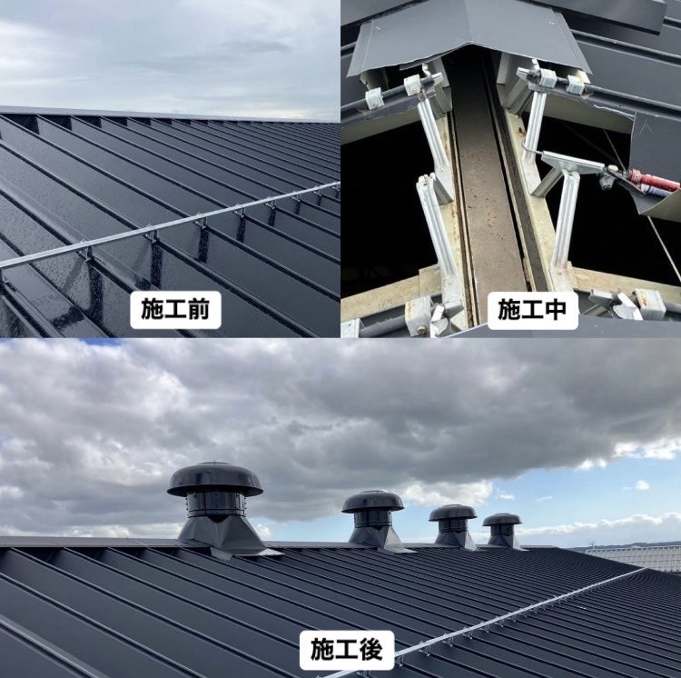 2024年10月 富山県高岡市 【 製品名 】 SVO-750TQ 4台 【 事業内容 】 金属加工業(染色) 【 相談内容 】 寒い時期になると染色槽から発生する蒸気が建屋内に充満し、結露となり屋根から水が垂れてくる。 【 問題点 】 ・有圧換気扇や排煙窓はあるがルーフファンがない。 ・既存換気扇では能力が足りていない。 【 導入に至る過程 】 2024年2月上旬に打合せの際に蒸気が上にあがっているので、ルーフファンでの換気が効率的とご提案。冬中に導入予定でしたが暖かくなるにつれ蒸気が少なくなり、来冬前にという打合せで電気工事やお客様よりご希望いただいたルーフファンの染色(屋根色との統一)を行い、冬前に施工となりました。 【 施工過程・変化 】 施工中は蒸気は出ていなかったのですが、シャッター開口から風の流れを感じやすくなりました。 【 お客様の声 】 打合せしていたルーフファンの色が屋根とマッチしてよかったです。 冬に蒸気が出てくるので換気で蒸気籠りがなくなることを期待しています。 【 担当者 】 屋根色とルーフファンがマッチしており 非常に見栄えのよい施工が出来て良かったです。 |