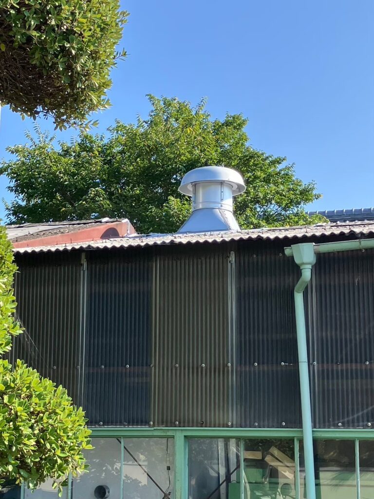 現場調査の際には、冷風機のデモンストレーションを実施させていただきましたが、室温低下の効果を比較検討した結果、冷風機器の導入よりも、ルーフファンによる換気性能の向上と遮熱シートの導入による断熱効果を優先すべきと判断し、その方向でプランニングを行いました。