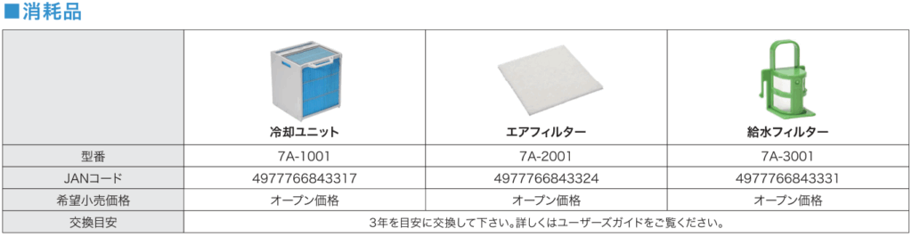冷却ユニットの機構を従来機種から大幅に見直し、間接冷却/直接冷却エレメントを一体化。オプション品として交換可能(交換目安3年)。