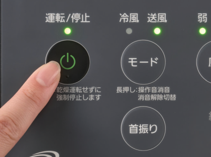 運転/停止ボタンで電源OFFにすると、自動的に30分間の送風運転(乾燥運転)になります。内部を乾燥させることで、衛生的に保ちます。