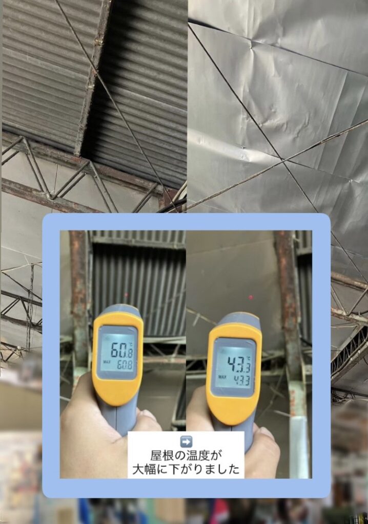 | 2024年9月 東京都大田区 【 製品名 】 ルーフファン:SVO-400TD 2台 IS遮熱シート GC-R (建屋内屋根下の施工) 218㎡ 【 事業内容 】 ウレタンゴム製品の製造・販売 【 相談内容 】 夏場だと、42~3度まで工場の温度が上がってしまい、 現場の社員さんにとっては過酷な労働環境状態になっている状況。 【 問題点 】 ・工場内に熱板が多数あり熱がこもってしまう ・屋根からの太陽光輻射熱による室温上昇の両方の対策が必要 輻射熱…赤外線として空間を通って伝わる現象 【 導入に至る過程 】 現場調査の際には、冷風機のデモンストレーションを実施させていただきましたが、室温低下の効果を比較検討した結果、冷風機器の導入よりも、ルーフファンによる換気性能の向上と遮熱シートの導入による断熱効果を優先すべきと判断し、その方向でプランニングを行いました。 【 施工過程・変化 】 ルーフファンの羽根の大きさに起因する騒音の増加を考慮し、周辺環境への影響を最小限に抑えるため、騒音値を加味したうえで適切な機器の選定を行いました。 【 お客様の声 】 今回の施工により、夏場の暑さがいくぶんか緩和され、これまで以上に現場の職人の皆様が集中して作業に取り組める環境が整ったと感じております。その結果として、より質の高い仕事に繋がることを期待しております。 【 担当者 】 このたびの施工にあたり、社長様ならびに奥様にお立合いいただき、多大なるご協力を賜りましたことで、現場作業を非常にスムーズに進めることができました。心より感謝申し上げます。 また、驚いたことに、社長様と私が同じ高校のご出身で、しかも同じ部活動に所属していたというご縁があり、大変うれしく感じております。 さらに後日、社長様よりお知り合いの同業他社様をご紹介いただくなど、弊社のプランニングに対するご理解とご評価をいただけたことを、大変光栄に存じます。 今後も、お客様にご満足いただけるようなご提案を重ね、より一層のサービス向上に努めてまいりますので、よろしくお願い申し上げます。 |